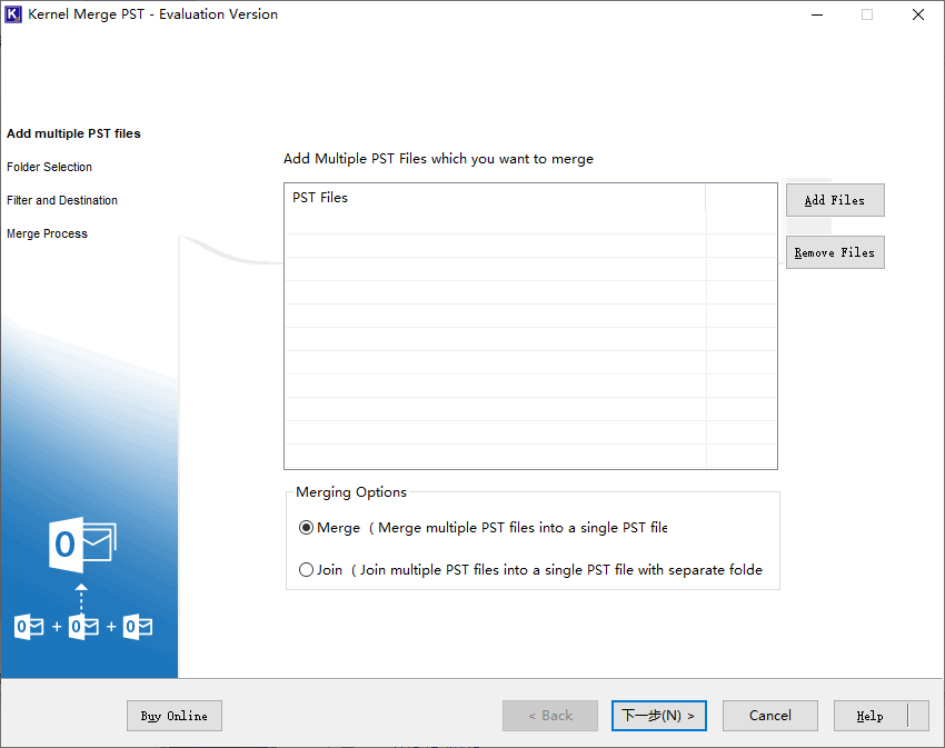 2、合并或加入加密/受保护的网络Outlook PST文件。