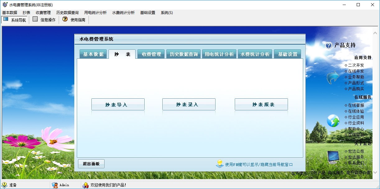 设置年月、基本信息录入、按台区查询水电表情况、按用户查询水电表情况