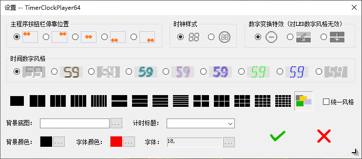 6、在软件底部设置时钟的背景颜色、计时标题、字体颜色和字体大小等。