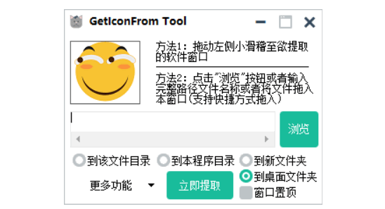 GetIconFrom Tool是一款简单轻小的图标提取软件,旨在帮助用户从应用窗口以及文件目录中提取各类图标,除此外,它还可以批量提取系统图标和计算机内的所有ico图标;这款工具是批量的图标提取工具,通过它可以让用户在提取图标时更加高效便捷;GetIconFrom Tool对程序开发者来说是很实用的工具,当您想提取某个图标而又不知道它的具体位置时,您就可以选择一个大概的图标路径进行提取,它不仅可以提取文件目录下的图标,包括子文件中包含的ico图标也可以轻松提取;需要的朋友赶紧下载吧。