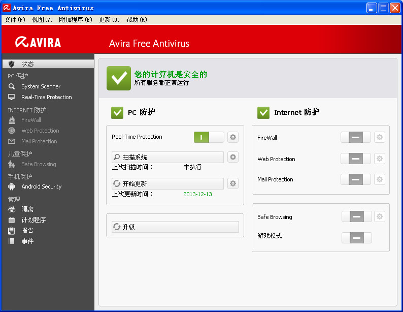 小红伞中文版Avira AntiVir是德国Avira公司闻名杀毒软件,功能很全面,杀毒迅速准确,获过很多奖项。而且小红伞软件体积也很小,杀毒快速准确,足够打败对手。Avira Free Antivirus是他的一个真正免费个人版。可查杀病毒、蠕虫、木马、隐蔽软件、网络钓鱼、拨号程序。它可以检测并移除超过50,000种病毒,支持网络更新。界面简明,启动迅速。尤其是老机器,装他最合适不过了。