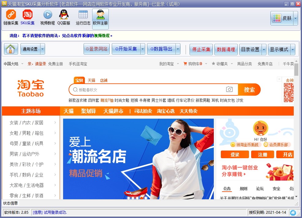 1、天猫淘宝SKU采集分析软件界面简洁直观、操作简单便捷