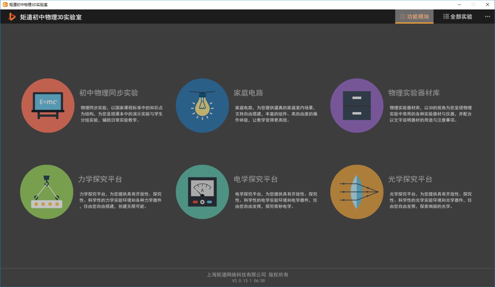3、双击软件即可进入矩道初中物理3D实验室功能选择界面