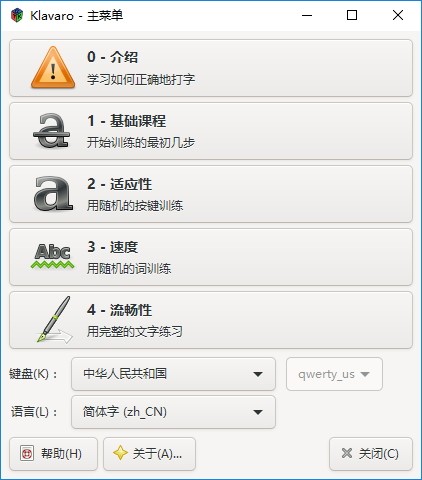 Klavaro是一款体积小巧、占用系统空间不大的盲打练习软件,使用这款软件用户可以进行规范性的打字训练,适合电脑初学者提高键盘打字速度使用,有效提高用户的打字速度和键盘适应性,同时该软件还支持键盘布局自定义,用户可以根据自己的打字习惯对键盘布局进行调整,便于用户快速熟练的进行键盘打字;Klavaro内置多种打字模式,满足用户对打字练习的需求,该软件支持软件支持多国语言显示、支持打字字体颜色自由选择,可为用户提供更为舒适的打字环境,有兴趣的用户可以下载使用。