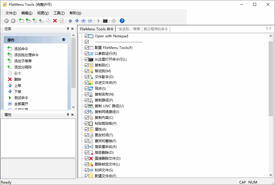 2、启动后的用户界面如下所示,您现在可以开始在该界面中配置您的右键命令。