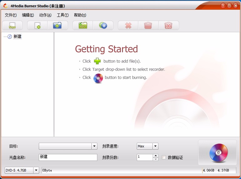默认刻录速度是光盘和刻录机支持的最高刻录速度,您可以随意设置速度。 您可以使用数据DVD / CD刻录软件最多刻录一次100张光盘。