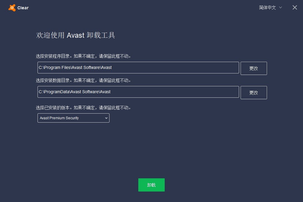Avast Antivirus Clear是一款功能强大、简单专业的Avast卸载清理软件,使用这款软件用户可以快速完整的卸载清理Avast安全杀毒软件,如果用户需要卸载 Avast Premium Security 安全杀毒软件,但您担心普通卸载有数据残留无法彻底删除,那么下载 Avast Antivirus Clear这款卸载清理软件则可以彻底解决这一问题,使用这款软件用户只需选择安装程序的目录和数据存储目录即可完全彻底的卸载清理这个程序,非常简单方便,有需要的朋友可以下载使用。