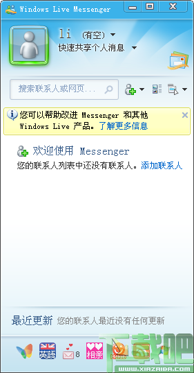 这个世界上比较大的即时通信网络仍在不断地发展和完善!现在,您可以与使用 Yahoo! Messenger(雅虎通)的朋友交谈。不得不用多个帐户与朋友交流已经成为历史了,Windows Live Messenger 让这一切变得简单。只要这些朋友联机,您就可以看到他们并通过 Windows Live Messenger 与他们聊天。
