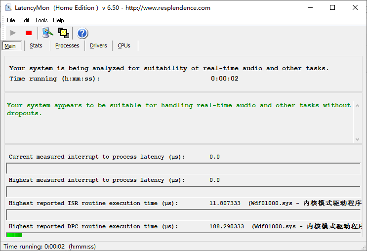 6、LatencyMon检查运行Windows的系统是否适合处理实时音频和其他任务。