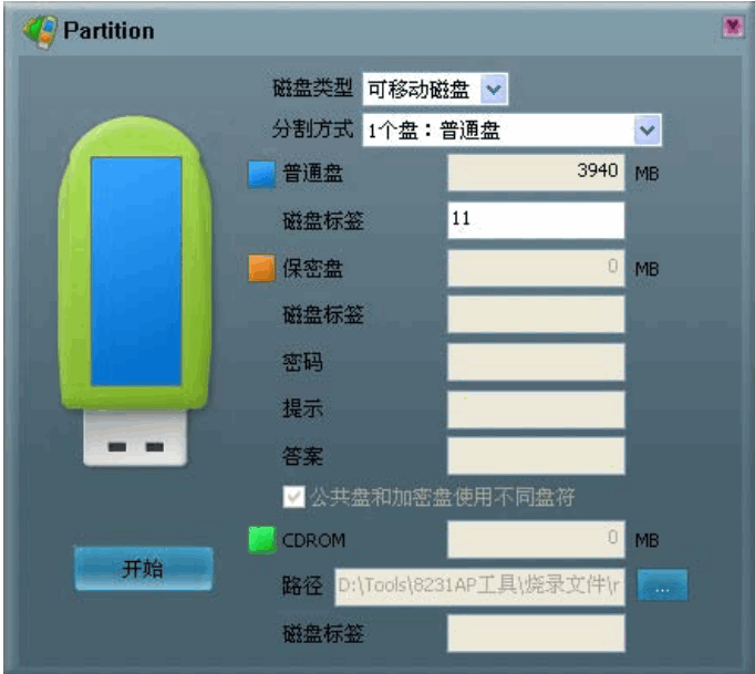 4、如果选择的分割方式是普通盘,那您只需要设置普通盘的标签信息就可以了。