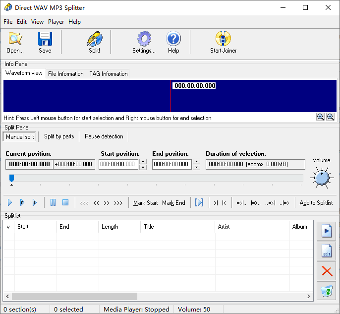 3、支持拖放文件,可以使用波形图形直观地拆分MP3文件。