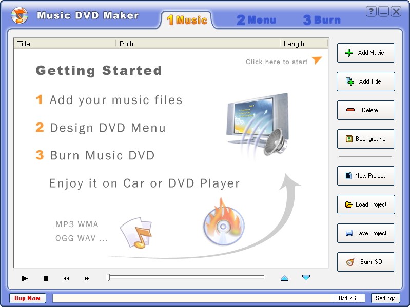 1、Music DVD Maker可添加喜欢的音乐进行DVD制作