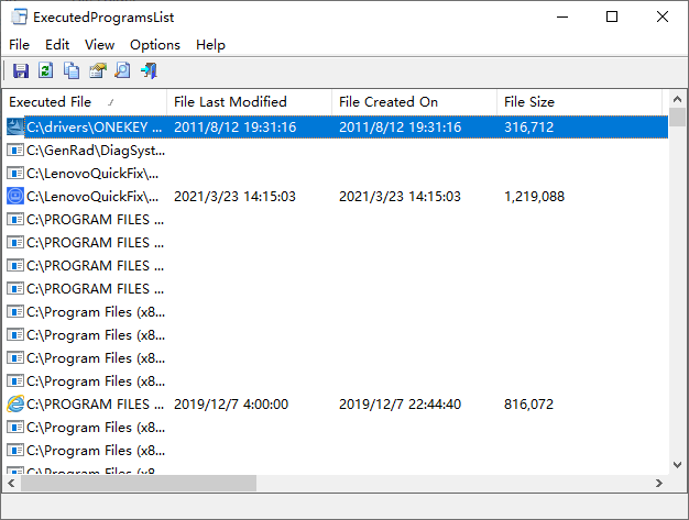 ExecutedProgramsList是一款便捷好用的程序和批处理文件显示列表,该工具可以可以显示文件或程序的详细信息,比如产品名称,产品版本,公司名称等等;这款工具无实际功能,主要为用户提供一个直观的文件信息查看功能,如果您想要查看某个程序的详细信息或某个文件上一次打开的时间,那么使用这款工具进行浏览是非常不错的;ExecutedProgramsList会自动加载相关的文件信息或软件信息,您无需配置任何参数,您打开后就可以查看相关的信息了。