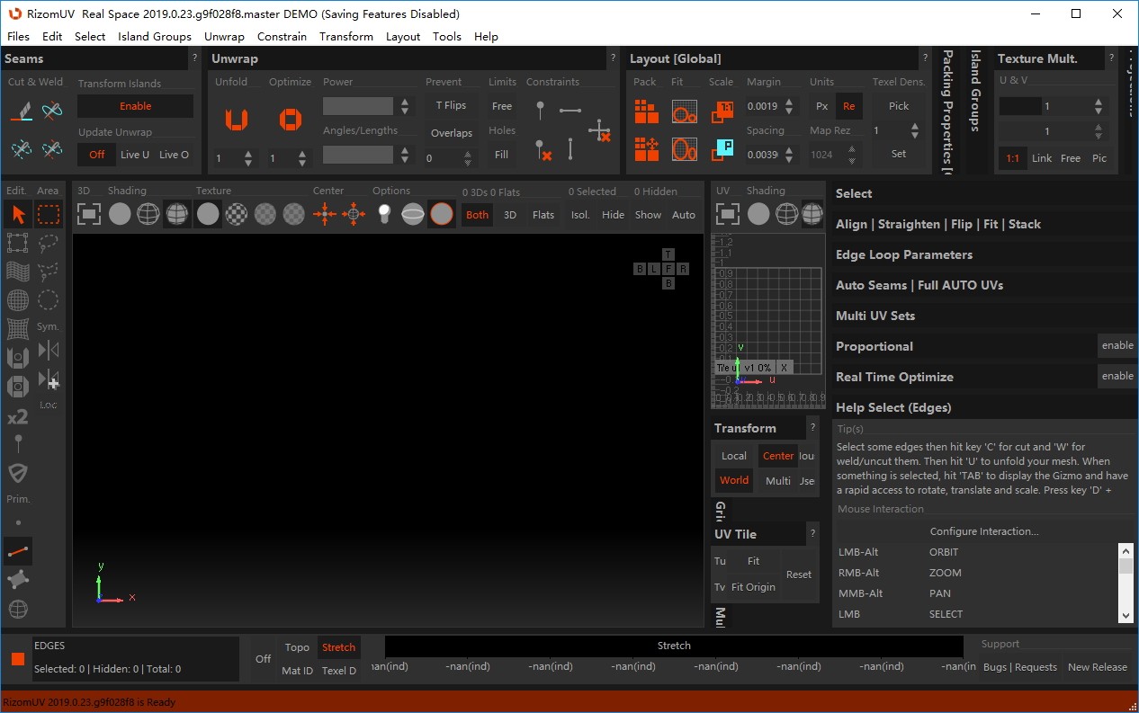RizomUV Virtual Space是一款功能强大、专业实用的游戏三维模型展UV制作和应用软件,使用这款软件用户可以在没有三角形翻转的情况下自行生成UV地图,同时该软件还支持模型对称功能,可让用户更加方便地制作对称模型,非常简单方便;RizomUV Virtual Space功能丰富齐全、简单易用,内置多种专业的游戏三维模型编辑工具,可帮助用户快速便捷的进行各种产品设计,例如包装设计、激光表面纹理处理等,通过该软件用户可以将UV贴图转换为10亿像素的大型文件,非常方便实用,有需要的用户可以自行下载。