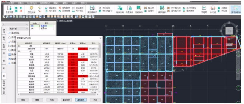 采用独创RCAD导入技术,快速提取图纸结构信息,并依据规范、标准、文件要求,智能辨识高支模, 一键输出高支模区域标识图及汇总表