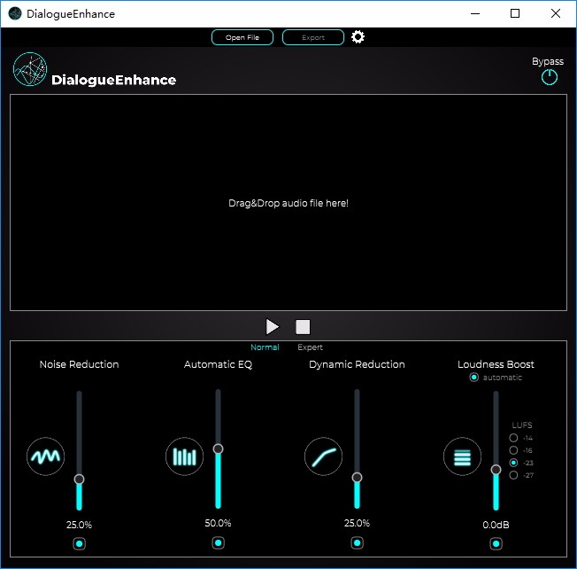 DialogueEnhance是一款功能强大、专业实用的语音处理软件,使用这款软件用户可以对音频文件音色进行增强,可以有效进行智能语音还原,让音频文件恢复原有人物发音,该软件支持降噪、自动均衡、动态降低、响度增强等四种不同的音频处理功能,用户只需将音频文件添加到软件上即可对音频文件的音色进行调整增强;DialogueEnhance界面简洁直观、操作简单便捷,使用这款软件用户可以轻松地提高语音记录的质量,而无需调整许多参数,是一款专业智能的自动语音处理软件。