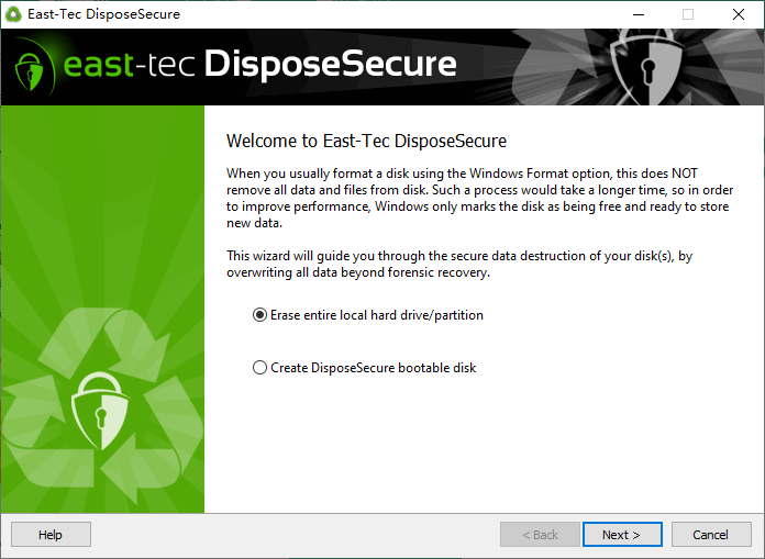7、为了使您更方便地使用east-tec DisposeSecure,可以从磁盘开始配置east-tec DisposeSecure的选项。
