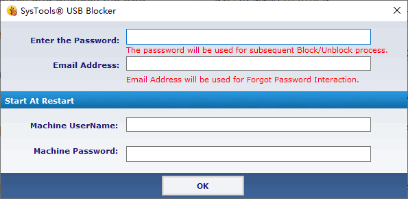 SysTools USB Blocker是一款USB禁用工具,它的主要功能是帮助用户阻止USB接入电脑;一些重要的文件除了加密外还应该要防止其他将其拷贝下来,毕竟现在有很多解密工具,和谐文件密码只是时间问题;这款SysTools USB Blocker无形之中可以为加密文件再上一道保险;通过设置您可以让USB无法在电脑上使用,如需需要使用则必须要输入正确的密码才可以,这在很大程度上能够限制其它人将用户电脑上的数据复制到USB中;这款工具简单易用,需要的朋友赶紧下载吧。