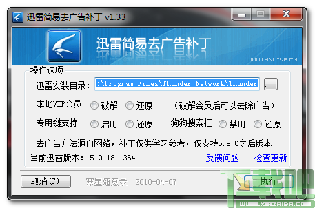 2009.06.16 v1.0 完成迅雷去广告功能,完善补丁细节,公开发布。