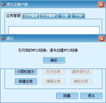 密九云是一款体积轻量、简单专业的安全云接入软件,内置应用管理、链接管理以及秘钥管理三大功能,可帮助用户进行专业高效的应用网络链接管理和添加,还可对秘钥进行安全管理,可让用户能在不同网络环境下快速安全的接入企业内网服务器;密九云界面简洁直观、操作简单便捷,支持协议隐藏、自动重连、添加默认网关的路由以及使用代理服务器上网等特色功能,轻松实现高效安全的网络安全连接管理,非常的方便实用,有需要的朋友可以下载使用。