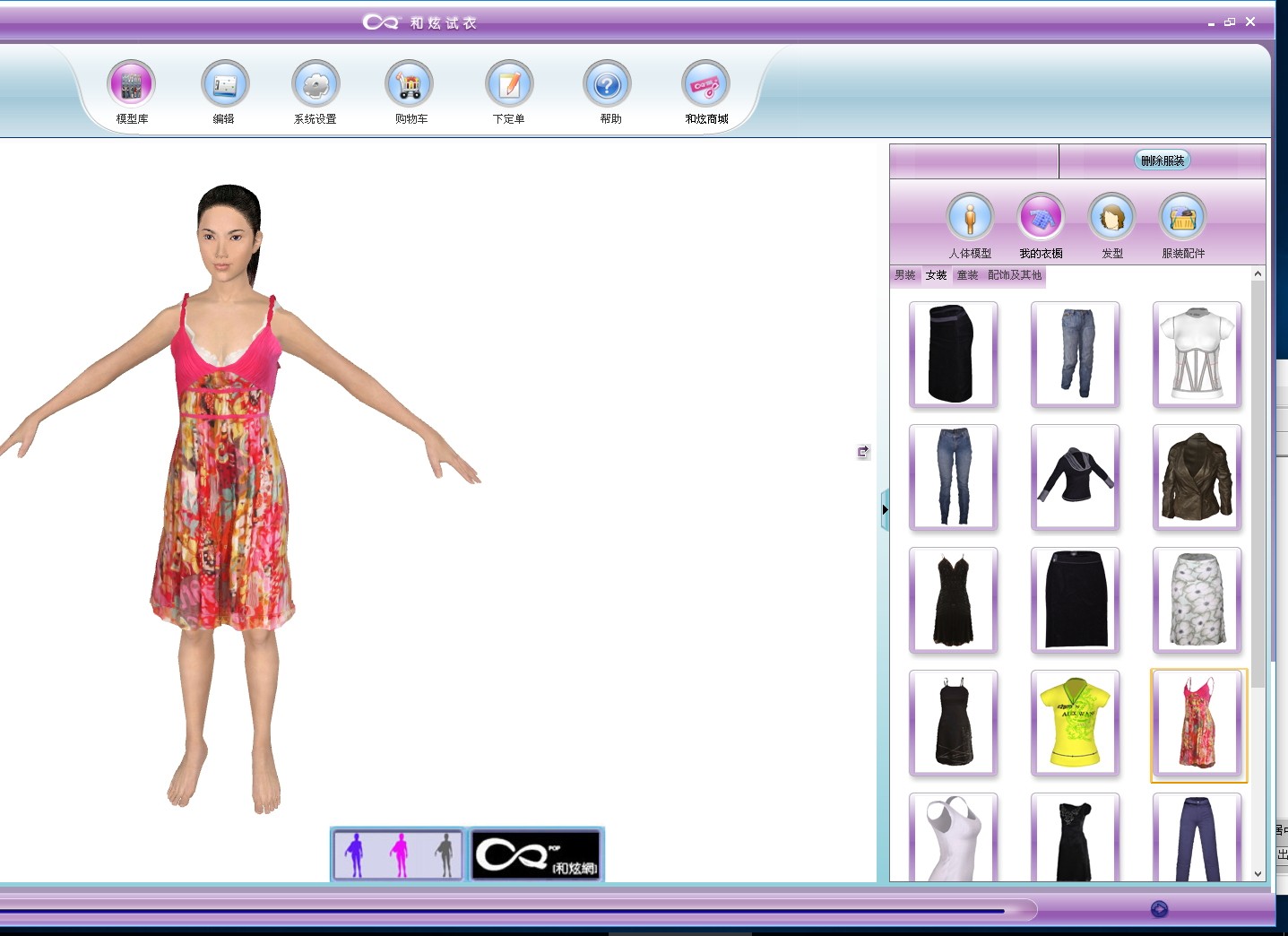 1、双击软件进入试衣软件操作界面可以自由选择不同款式的衣服进行试穿