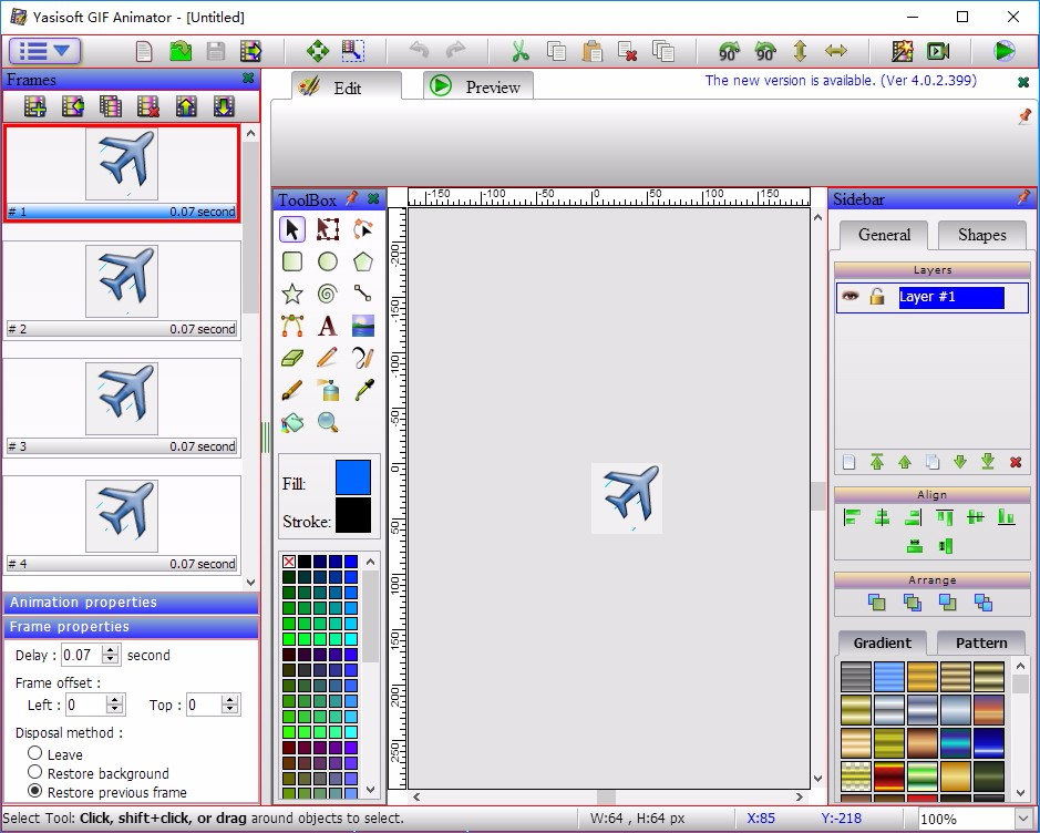 Yasisoft GIF Animator是一款可以帮助用户进行GIF动图编辑处理的多功能动画制作软件,使用这款软件用户可以将GIF动图或者其他格式的图像添加到软件上进行编辑处理,该软件内置有丰富多样的动图模板以及图像素材,点击即可进行使用,可帮助用户快速便捷地进行动图制作设计;Yasisoft GIF Animator支持动图制作预览,可对GIF动图一边编辑一边预览,方便用户查看不足的地方随时修改,让用户可以更为方便快捷的进行完美的GIF动图制作,非常方便好用,有兴趣的朋友赶快下载吧。