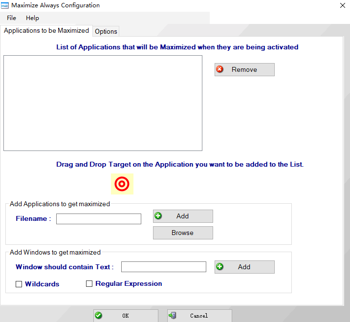 Maximize Always是一款窗口增强软件,旨在帮助用户将窗口最大化,让用户在运行或启动某个应用程序时,让它的窗口自动以最大化的模式打开;这款工具适用很多场景,比如在您观看视频时,如果要将播放器切换到全屏您需要先打开播放器然后再手动切换到全屏,而在这款工具的帮助下,您就能够以最大化的方式打开播放器;Maximize Always的使用方式非常简单,您只需要将应用拖放到软件中即可使其保持最大化的窗口设置,它还提供了一些功能选项,您可以自行按需配置。