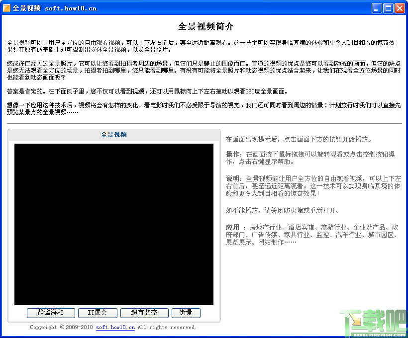 全景视频可以让用户全方位的自由观看视频,可以上下左右前后,甚至远近距离观看。这一技术可以实现身临其境的体验和更令人刮目相看的惊奇效果!在原有DV基础上即可摄制出立体全景视频,以及全景照片。