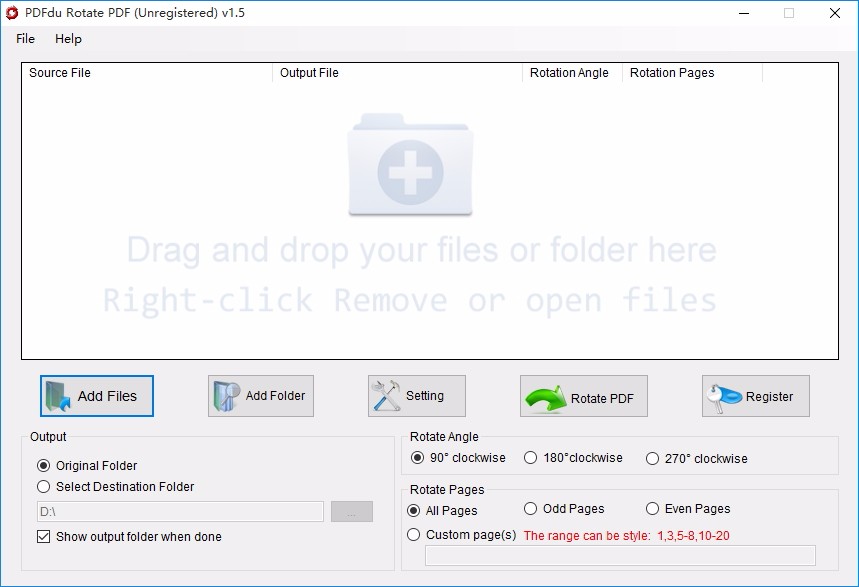 支持拖放功能,可直接拖放PDF文件,进行页面旋转
