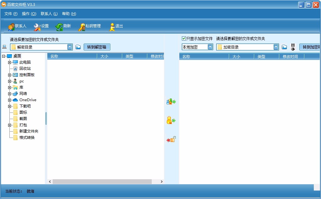 百密文件柜是一款非常专业且优秀的文件加密软件,使用该软件可帮助用户快速对文件进行加密,支持IBC标识加密,加密成功后需要输入指定的IBC标识才可打开文件,查看文件内容,软件提供了资源浏览器,可快速浏览电脑本地文件,便于您快速选择需要加密的文件,同时提供了加密箱和解密箱,可对多个文件进行加密或解密,将这些加密或解密的文件进行保存,便于后续使用,可对联系人进行管理,查看每个联系人的IBC标识,加密文件时可输入别人的IBC标识,便于将文件传输给对方,这么好用的软件赶快下载试试吧!