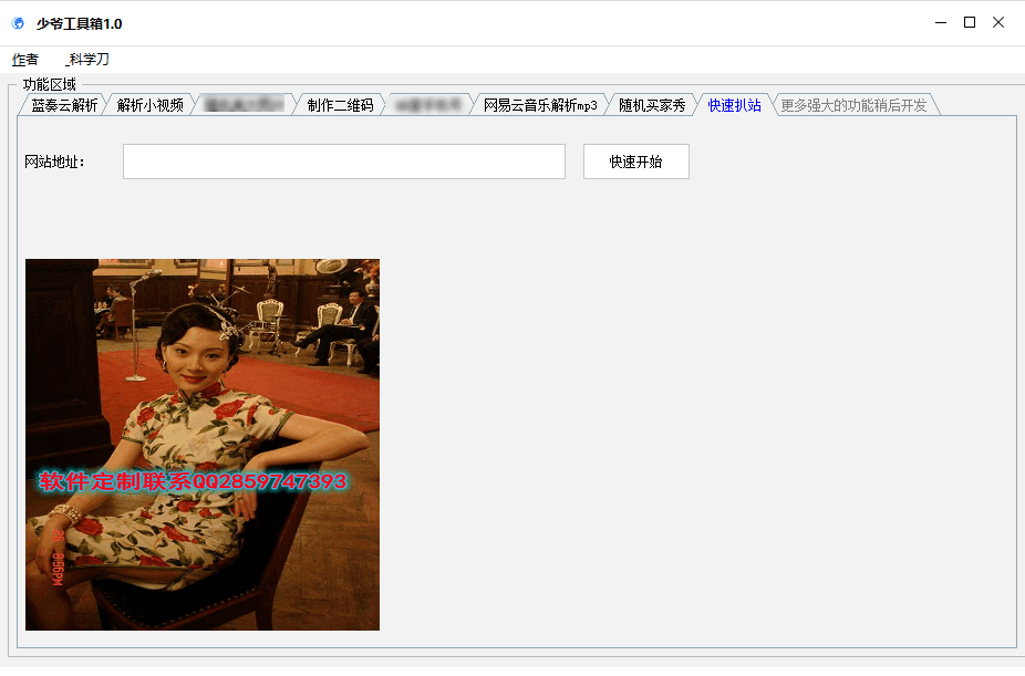 少爷工具箱是网友自制的一个多功能工具集合,这款工具箱中包含蓝奏云解析、小视频解析、二维码制作以及网易云音乐解析等实用功能;这款工具的操作方式非常简单,几乎所有功能都可以一键操作,无需配置繁琐的功能参数;这款工具对从事自媒体工作的用户来说是很有帮助的,它可以帮助您快速在抖音、微视、快手等主流的短视频平台上采集无水印视频或音乐等媒体素材;少爷工具箱可以为用户提供的功能还算丰富,最重要的是这款工具全部免费,用户无需注册或购买会员就能直接使用。