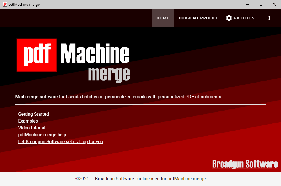 PdfMachine merge是一款简单易用的数据合并软件,这款软件可以帮助用户合并Word,PowerPoint,Excel或是HTML,然后将其输出为PDF附件,这样方便用户将创建邮件并发送给其他人;这款软件包含的功能很丰富,您除了可以合并配置文件外还可以通过它发送电子邮件,搜索信息和加密PDF附件等;PdfMachine merge可以为用户日常收发邮件提供帮助,让您轻松且高效的完成各种资料的整合及数据合并;这款工具与我们平常使用的PDF合并工具是两种不同的概念,这款工具更适用于办公邮件的创建场景中;需要的朋友赶紧下载吧。