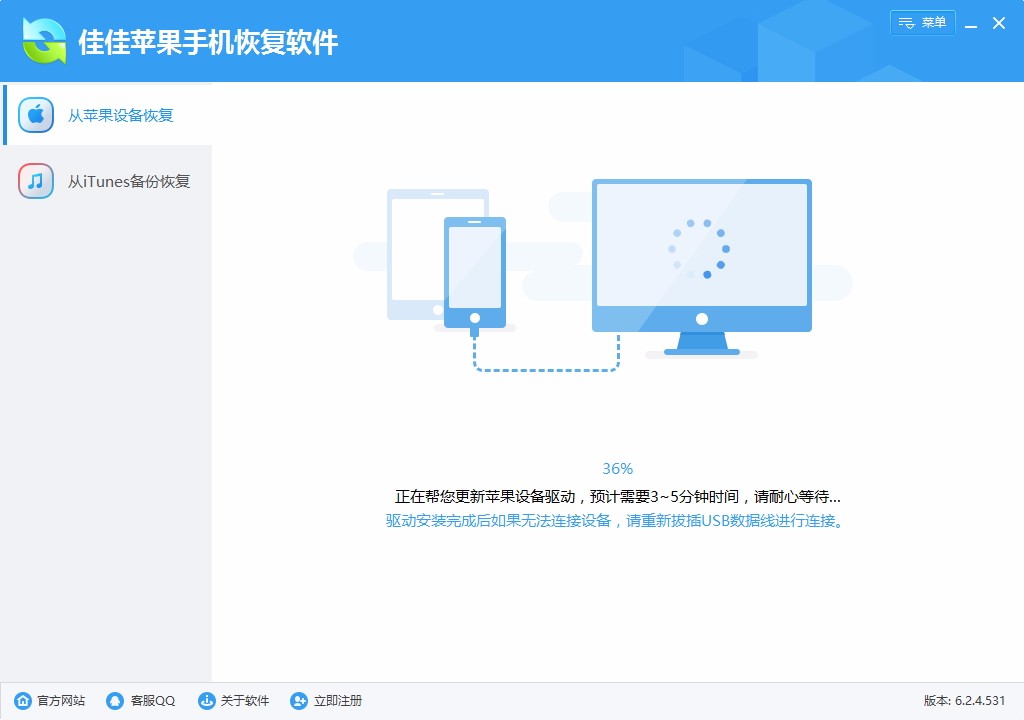 3、正在帮您更新苹果设备驱动,预计需要3-5分钟时间,请耐心等待