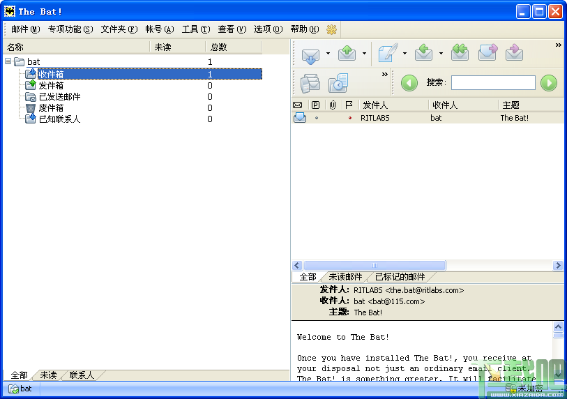 The Bat!是一个强大易用的E-mail客户软件,支持多用户环境,不受限制的E-mail帐号的安全和非安全的消息 访问,全面的消息过滤,多语种界面,MIME标准和UUEncode,带消息模板的相当不错的文本编辑器,以及其他很多小的实用特色。