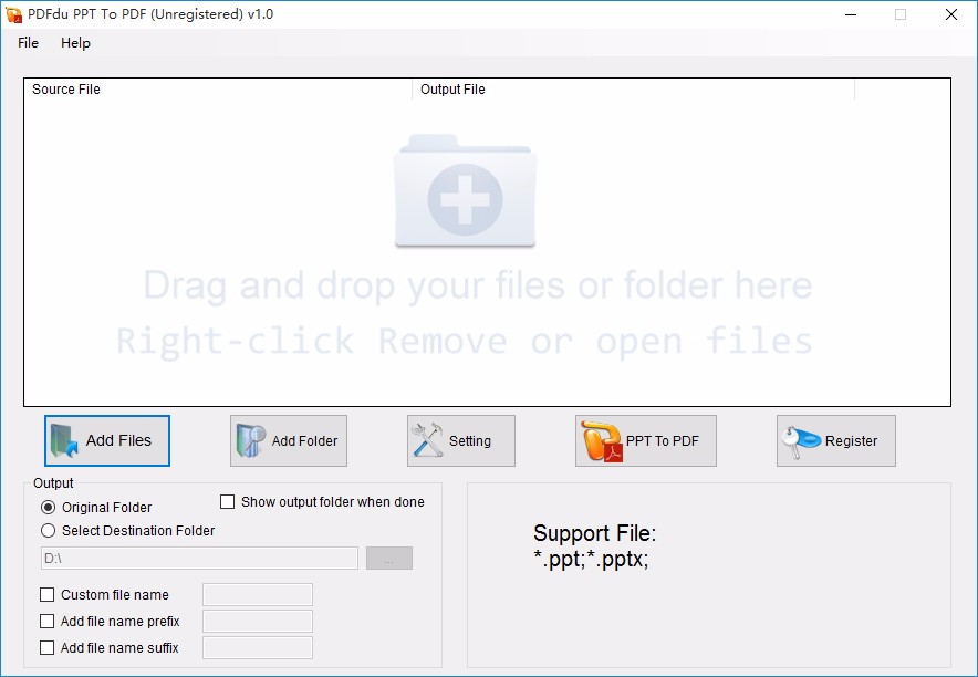 Converter是一款非常简单且实用的PPT到PDF转换器,提供强大的转换功能,可帮助用户快速将PPT文件转换与输出为PDF文件,您可以选择添加单个文件,将某一重要的文件单独进行转换,也可选择添加多个PPT文件,批量进行转换,从而能够执行多个不同的转换任务,内置精准的转换算法,可快速且准确的输出指定格式的文件,默认输出为PDF格式,支持添加PPT或PPTX格式的文件,不限制文件大小,不管是多大的文件都可进行格式转换,欢迎有需要的用户下载体验