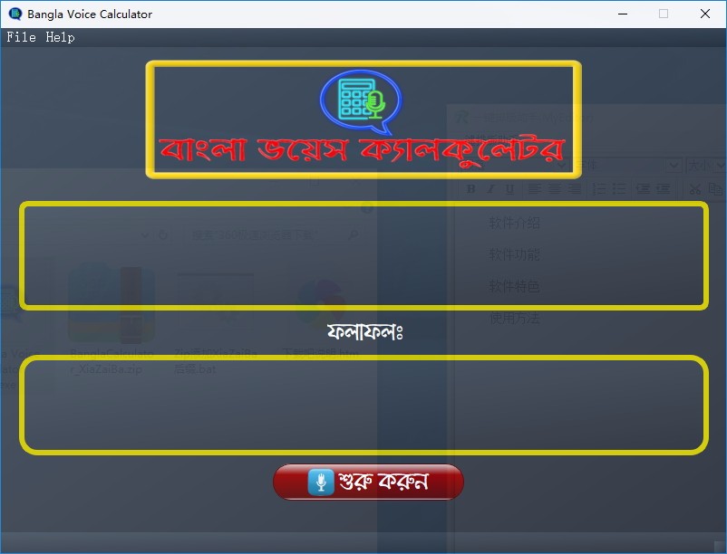 Bangla Voice Calculator是一个界面简洁直观、简单易用的语音计算器软件,使用这款软件用户可以通过孟加拉语语音命令作为输入口令,计算器可根据口令命令执行基本的数学计算,该软件没有其他参数输入按钮,只有一个语音口令输入,用户只需通过语音输入即可进行数学计算;Bangla Voice Calculator是一款非常常见的计算器软件,用于windows平台的GUI应用程序,使用界面默认孟加拉语显示,同时该软件只支持基本的数学计算,非常适合初学者进行使用,有需要的朋友可以自行下载。