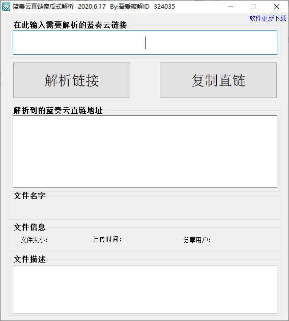 2、进入软件后将需要解析的蓝奏云链接复制到程序的输入框中。
