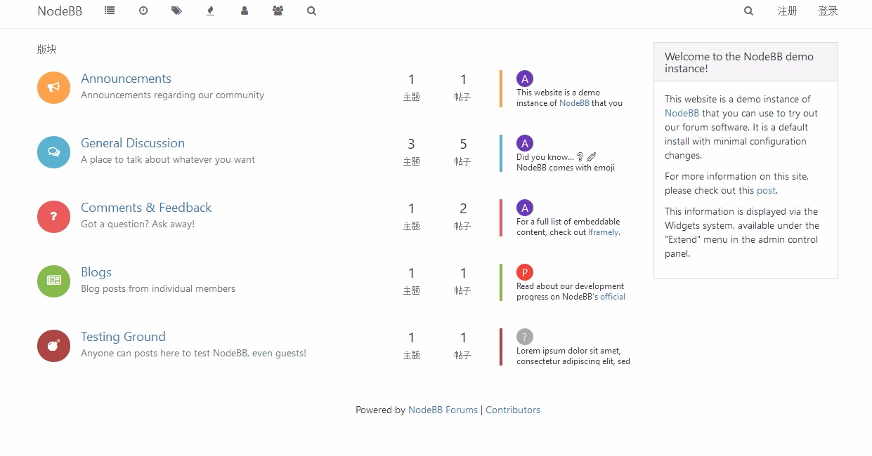 NodeBB是一款功能强大、简单易用的论坛管理系统,基于Node.js构建开发,采用web socket技术实现,支持采用redis或mongoDB数据库以及响应式布局,具有极强的浏览器兼容,可为用户快速搭建一个功能丰富、高性能的网站论坛系统;NodeBB界面简洁美观、操作简单便捷,用户可以快速进行论坛主题言论发表,同时该软件支持多国语言显示,为企业客户量身定制的高性能论坛,可与您现有的基础架构集成,可将论坛的体验带向一个新的高度,可以说是一款非常优秀实用的网络论坛管理系统。
