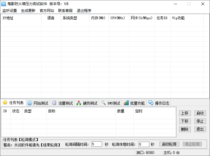 鬼影防火墙压力测试软件是一款多功能的网站测试工具,您可以使用这款工具测试网站的安全性、网站流量、DNS以及硬件防护等;这款软件相当简单,它拥有一个简洁直观的用户界面,用户可以轻松在该界面中使用各种功能;该功能可以帮助您测试网站的防火墙,使用户能够根据测试的结果修复相关的网站漏洞以避免网站受到攻击;鬼影防火墙压力测试软件拥有多种测试方案,可以在多个方面测试网站的安全性,提供详细的日志窗口,可以通过日志分析网站的安全性;需要的用户欢迎下载。
