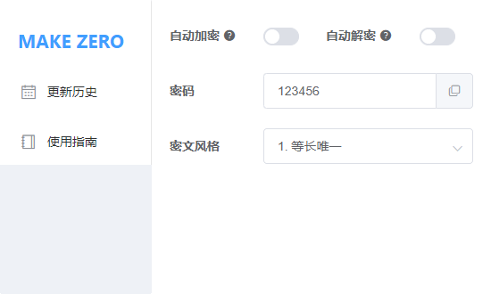 如果在“设置”面板中选中了“自动加密”,则具有焦点的密文输入框将在焦点出现时显示纯文本,而在焦点丢失后将显示密文。