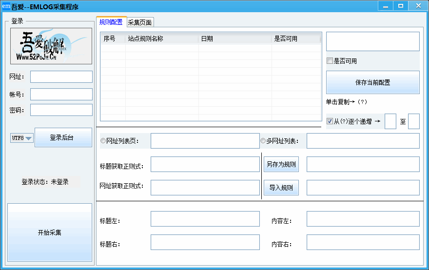 EMLOG采集程序是网友自制的网页文章采集工具,用户可以使用这款工具采集各种网站上的文章并将采集的文章一键发布到自己的Emlog博客中;这款工具简单易用,用户可以自定义获取文章标题和网址的正则表达式;它支持在多个网站中采集文章,这不仅让用户采集的文章内容更丰富,还为用户节省了很多时间;EMLOG采集程序是一个免费的工具,用户无需注册就可以直接使用,这款工具对EMLOG博客的重度用户来说是一个不错的文章采集辅助工具,感兴趣的小伙伴欢迎在本站下载体验。