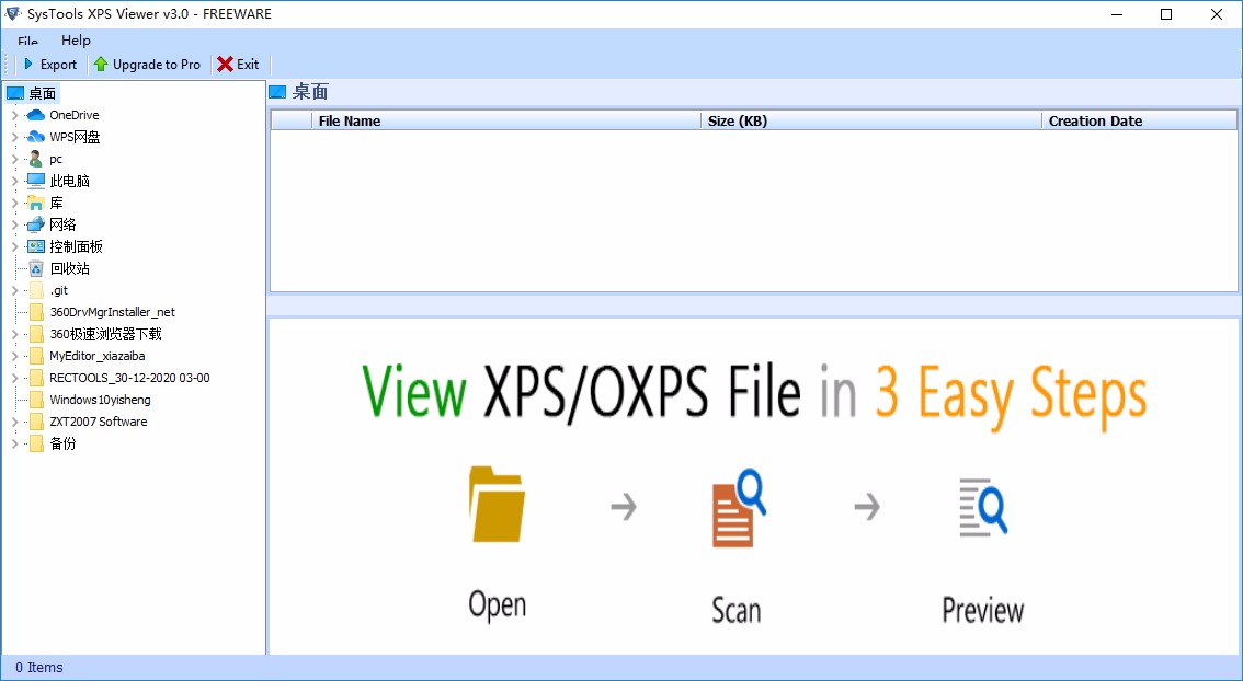 当用户从左窗格中选择XPS文件文件夹时,它将显示其中所有可用文件的列表。之后,要查找任何特定文件,还可以使用多个属性(例如,文件名,KB大小和创建日期)对它们进行排序。此功能将使用户很容易地找到ant文件,而不会浪费任何时间。