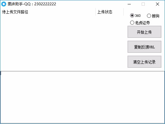 图床助手体积轻量、简单易用,是一款可以帮助用户进行图床上传的强大软件,通过该软件用户可以将图片上传并存储到指定的服务器,该软件支持360、搜狗以及老虎图床上传,用户可以根据需要选择图床上传方式,非常简单方便;图床助手界面简洁直观、功能整齐明显,可帮助用户快速将本地图片上传到图床进行保存,方便用户后续对图片在网站上的使用,同时有效减缓图片对自己服务器的压力,有需要的朋友可以下载使用。