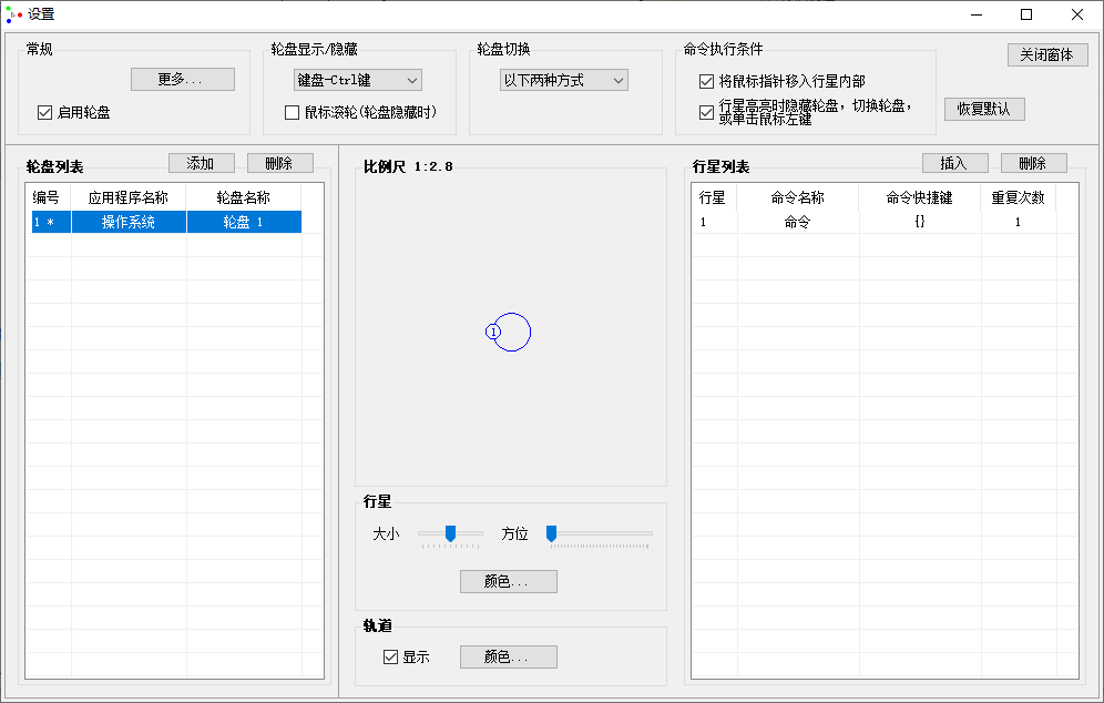 6、提供程序设置功能,方便用户设置轮盘显示、隐藏、切换和命令等。
