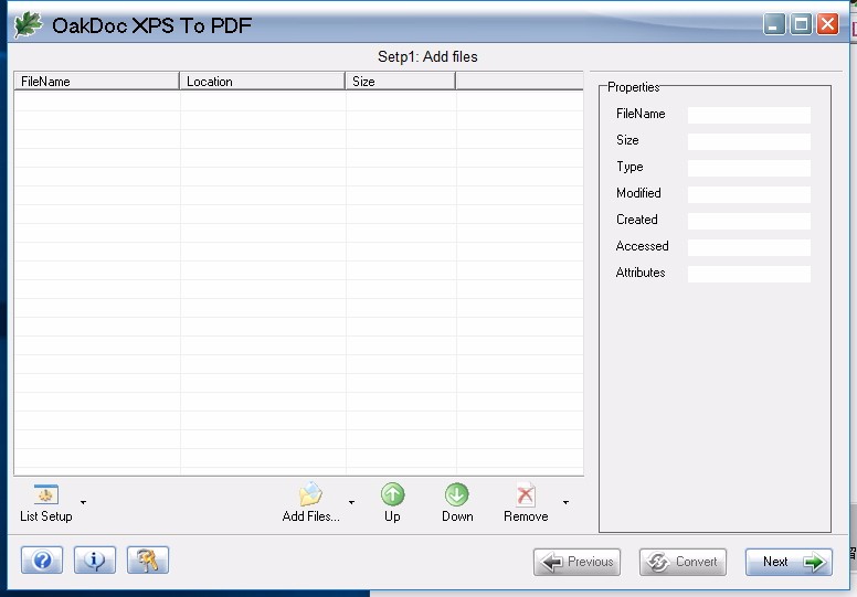 可查看待转换的XPS文件的名称、大小、类型、修改时间等信息