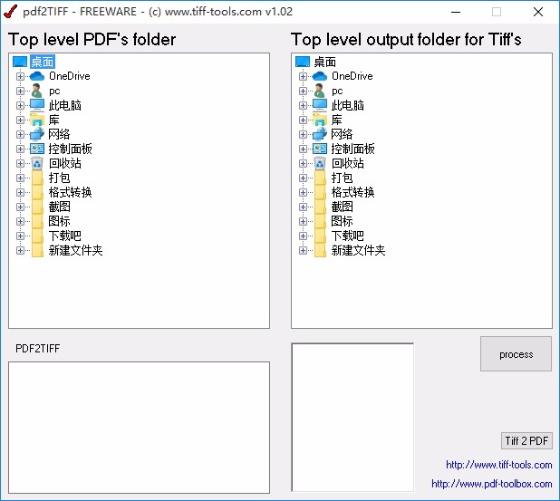 PDF2TIFF是一款非常简单且实用的PDF转TIFF转换器,提供强大的转换功能,可帮助用户快速将PDF文件转换与输出为TIFF文件,提供资源管理器,可在软件界面浏览不同的文件夹,便于您快速查找需要转换的PDF文件,选择文件夹后即可自动显示该文件夹中的所有PDF文件,将这些文件集中显示在待转换列表中,同时您也可以直接选择一个文件夹设置为输出目录,一键即可进行转换,转换完成后可显示对应的状态,便于您快速了解文件是否转换成功,这么好用的软件赶快下载试试吧!