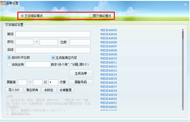 5、抽奖名单有两种模式,一种是文字抽奖,另一种是相片抽奖。