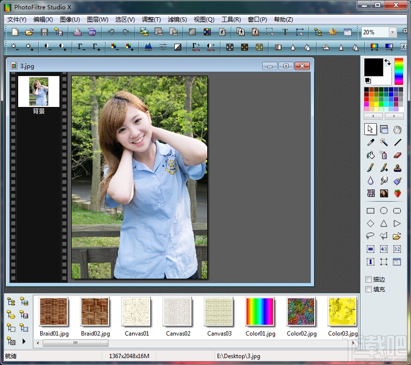 PhotoFiltre Studio绿色中文版是一款功能强大、容易上手的图像编辑软件。自带多个图像特效滤镜,使用它们可方便地做出各式各样的图像特效;文本输入功能颇具特色,有多种效果可供选择,并能自由地调整文本角度;内置 PhotoMasque(图像蒙板) 编辑功能。支持图层编辑,支持动画 GIF 和 Photoshop 的 8BF 滤镜,自动插入版权信息。