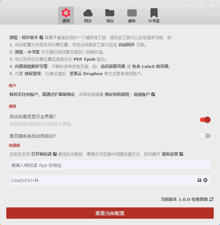 6、借动简悦·同步助手,可以增强简悦导出到本地功能,如:更方便的Epub PDF等使用以下功能的前提需开启同步服务,可在通用选项卡开启。
