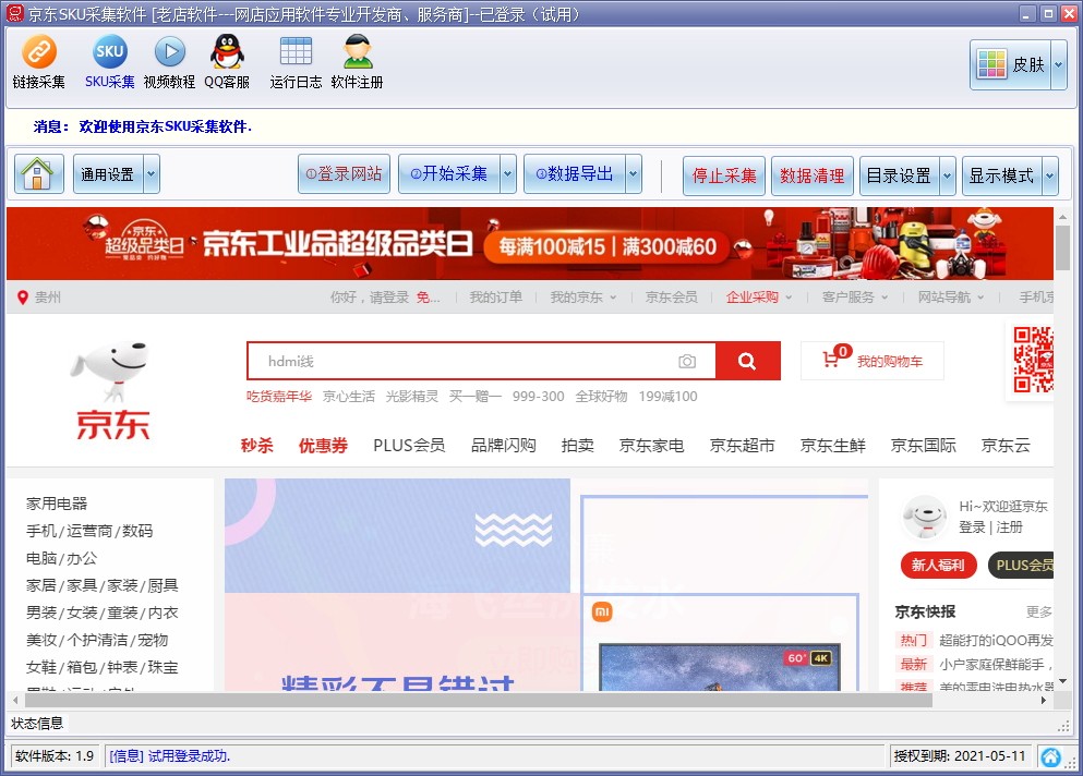 1、京东商品SKU采集软件可以快速采集指定的商品信息
